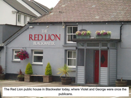 Violet and her husband George were the landlords of the Red Lion Inn at Blackwater from 1940 until 1947. Violet and George's grave is rather distinctive, having separat